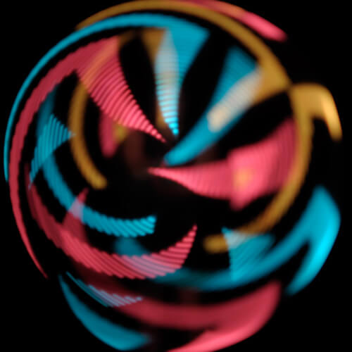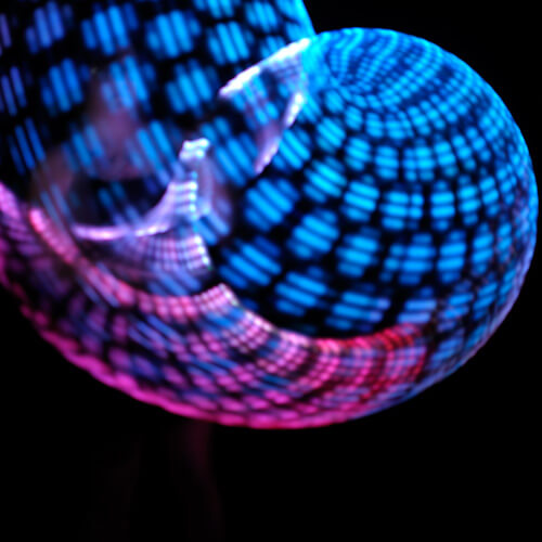 - FutureHoop patterns that use more black space than color are powering fewer LEDs at once, which extends battery run-time. Simple, minimal patterns (like spirals and chasers) can last for many hours on a single charge.