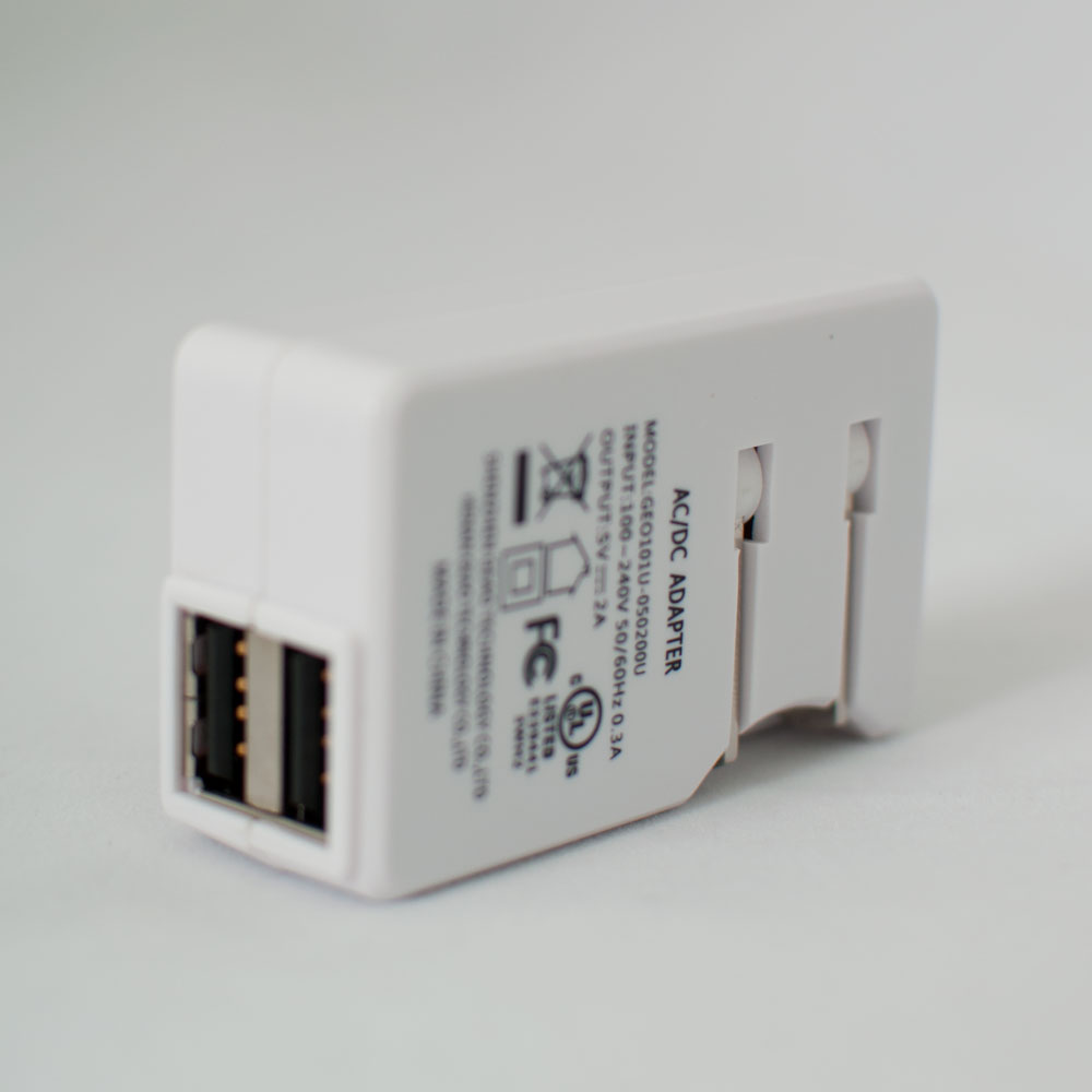 - 1 Wall charger with 2 USB ports