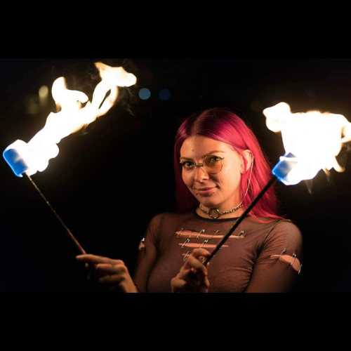 Her advice for someone just starting out with flow arts would be to have fun, practice as often as you can in small increments, watch yourself in a mirror, and practice one hand drills. You can truly master any prop, learn any trick, etc as long as you practice and keep trying because it is all based on muscle memory and neural pathways! I always say "just go to sleep and you'll have it in the morning!".