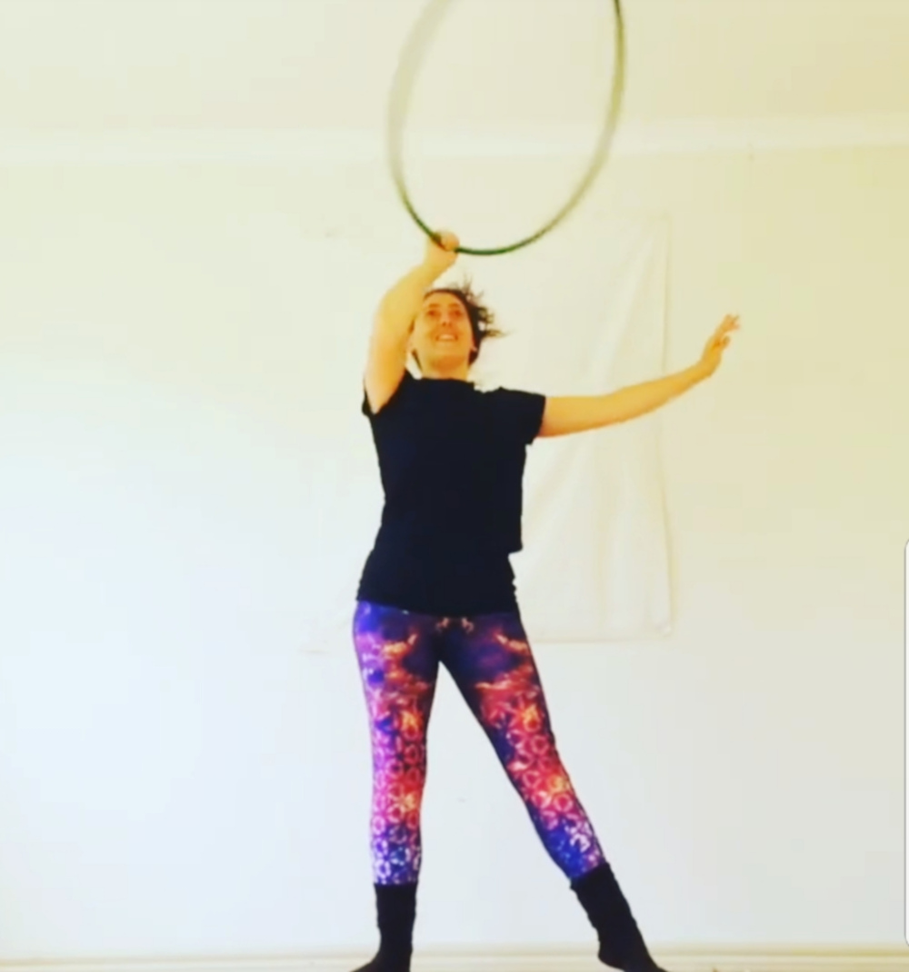 In my backyard studio, where I also teach one-on-one and small hooping classes.