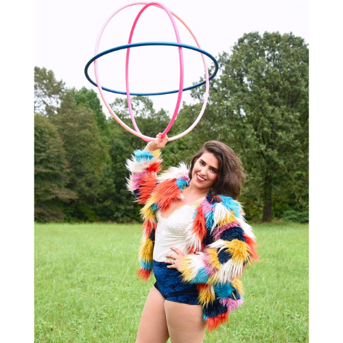I would say if you want to get really good at it you need to practice a lot. The more you put in, the more you get out. Deanne Love on YouTube helped me a lot. I also loved watching GemGen on YouTube, she has tutorials as well. She is also the one who inspired me to make monthly progress videos. I would also suggest filming yourself. Not for others but for YOU. It is so helpful to see how you are doing tricks. The last advice I would give is don’t try to flow like someone else. The beauty of hooping is that is it you + a hula hoop. It is your unique expression that makes it so special.