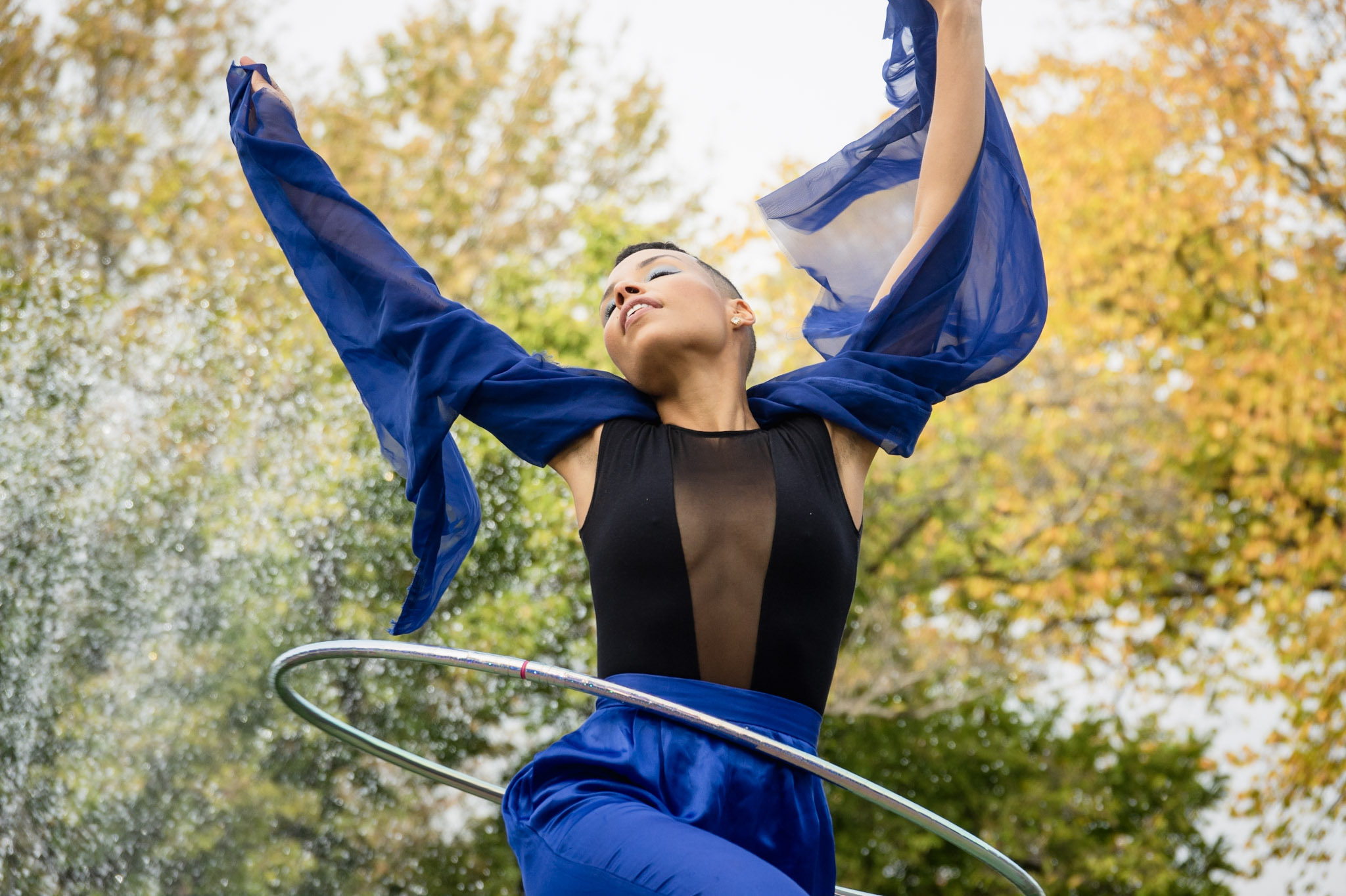 I fuse dance with hooping. Which means I am counting 5-6-7-8 in my head a lot. I like to imagine I am playing a melody with my hoop. I also like to imagine the hoop is my lover. I think that’s why people say my style is sensual and groovy. I look up to Marawa the Amazing because of how she made her own path to a successful performance career. I also really love Sky Flow Artist, the way she interacts with her hoop as more than just an object and takes advantage of the space around her - it is how I envision myself to be as I continue to grow.