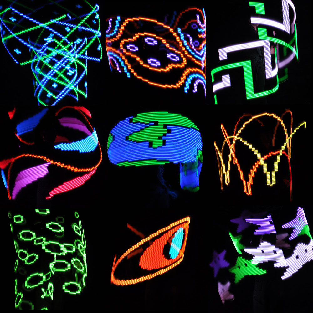 - Motifs (blinks pink) – Inspired by traditional art motifs with a splash of 8-bit iconography. Dynamic colors and effects layer to create endless variations and unbelievable trails in lush color palettes.