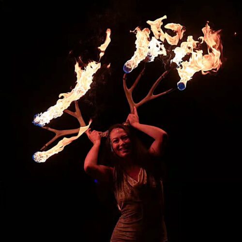 Fire has always been a centerpiece of festival nights, and antler props amplify that magic. They lend themselves to character work, forest-spirit aesthetics, and performances that feel ceremonial or mythic. Whether you’re dancing at a desert burn, a woodland gathering, or a waterfront show, antlers add an unmistakable presence that feels timeless and alive. They aren’t just tools — they’re characters, creatures, and mood-setters.