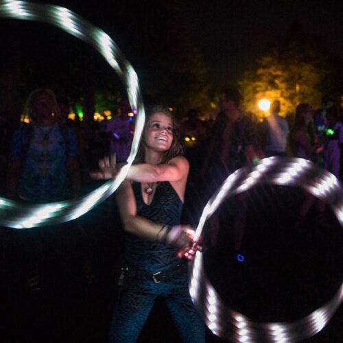 5/8″ hoops are light, bouncy, and fun, but it’s good to think about what kind of hooping style you’d like to use with the hoop when choosing both the thickness and material of the tubing. 3/4″ hoops are made with thicker tubing that is slightly heavier, but also sturdier, and considerably less flexible than 5/8″ hoop tubing. If you like to hoop with a faster or more aggressive hooping style, the thicker 3/4″ tubing may be the best option to keep up with faster paced flow.