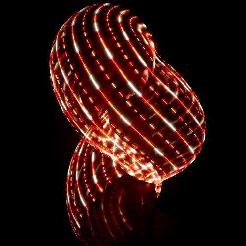 Sparks of red, amber, orange, and white swirl together in the incandescent glow of this fire-inspired hoop.