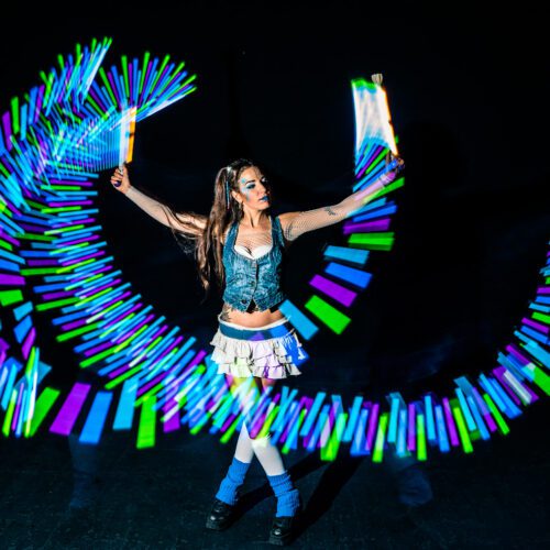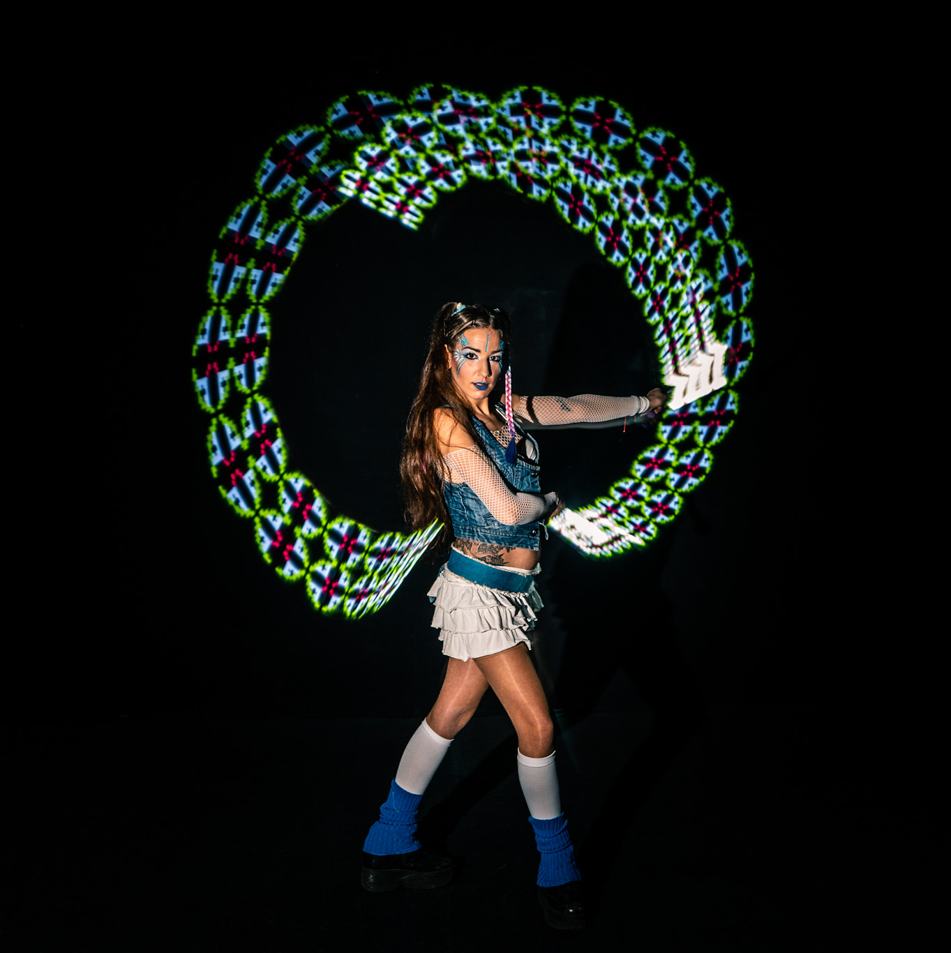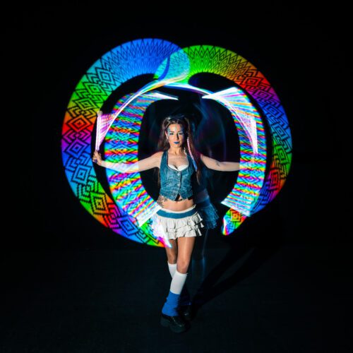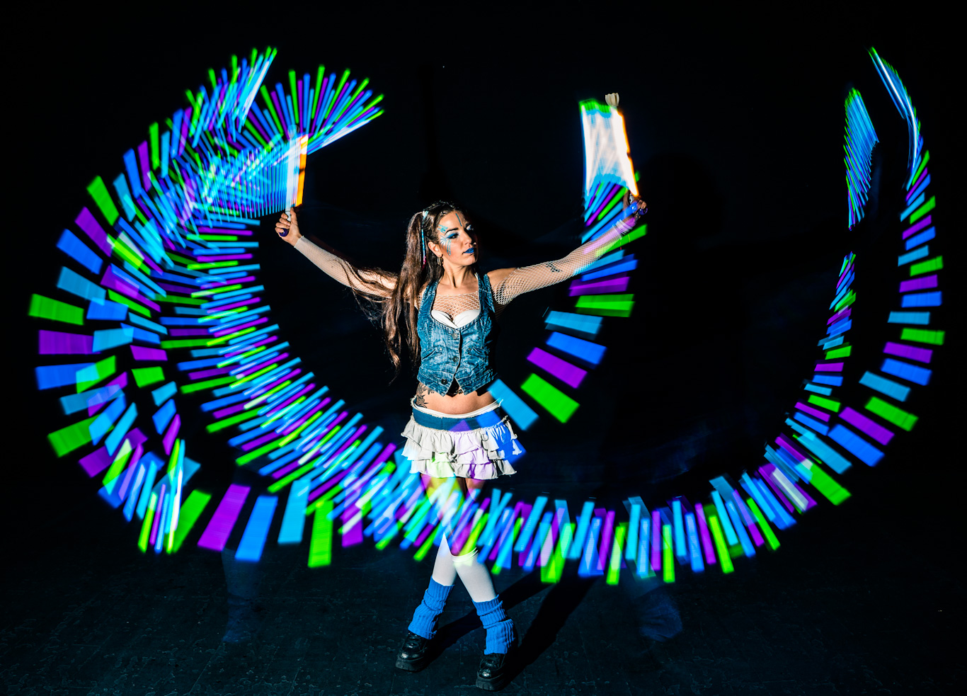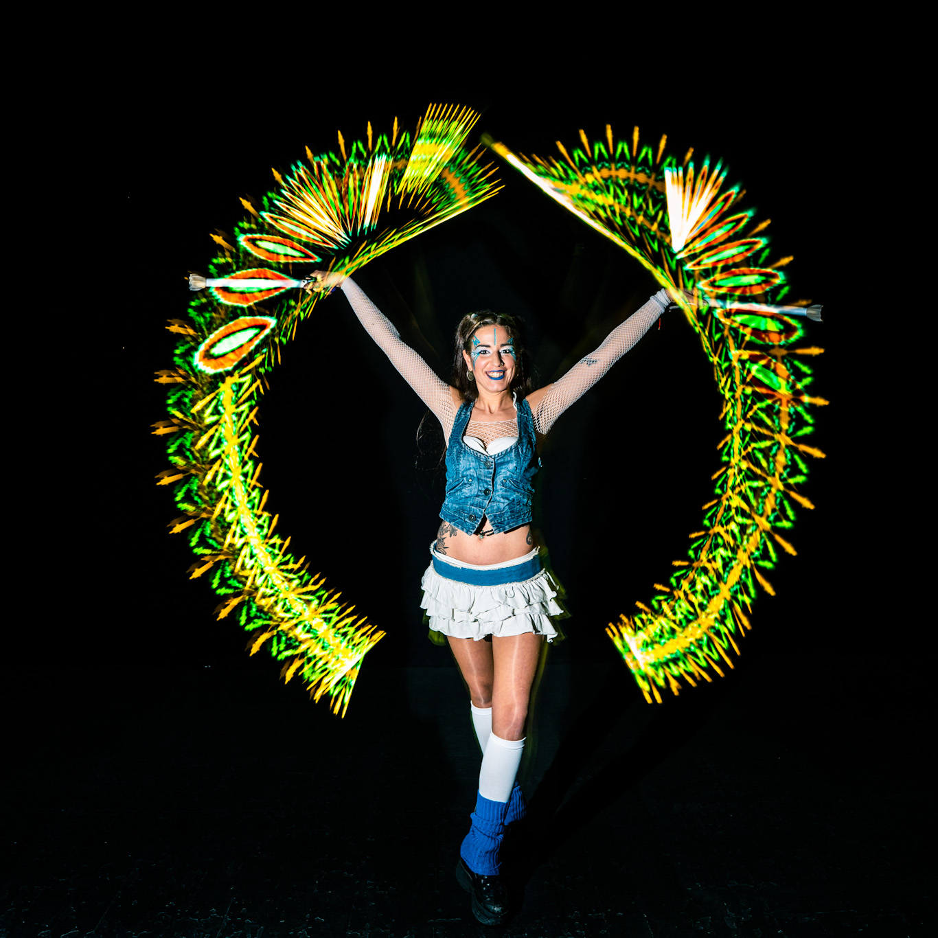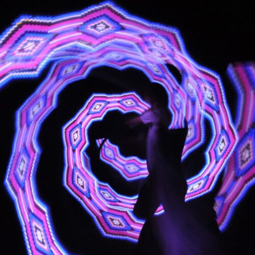 Fun fact: FuturePoi and FutureStaff use identical light elements. You can easily detach FuturePoi’s handles and clip the light elements into the FutureStaff Attachment, and vice versa. The FutureStaff casing is made from durable 1-inch OD polycarbonate tubing with a rigid wood core, reinforced attachment points, and high-visibility center point for balancing your contact moves. The FutureStaff Attachment is compatible with all FuturePoi models. Looking for a Future Staff Attachment piece in a custom size? No problem, just ask.