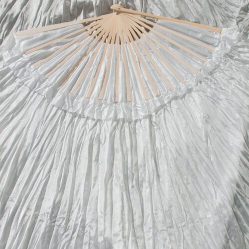 Each silk fan is hand-dyed which may create slight fluctuations or spots in the color that are unique to the individual fan. The wood used for the fan frame may also have slight fluctuations in the color, which is a natural part of the material.