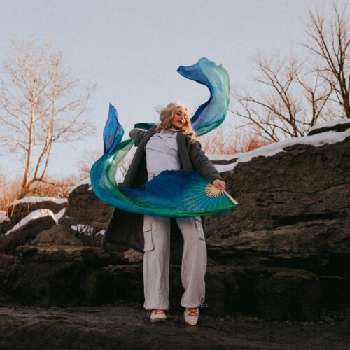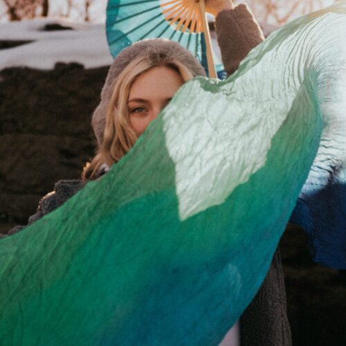 Each silk fan is hand-dyed which may create slight fluctuations or spots in the color that are unique to the individual fan. The wood used for the fan frame may also have slight fluctuations in the color, which is a natural part of the material.