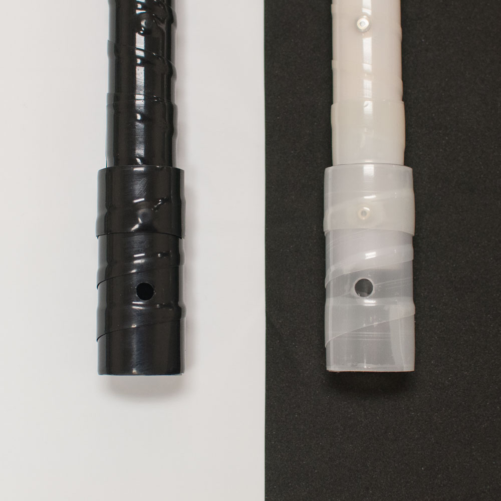Tape comes in black or clear, or colors and provides excellent grip for spinning staff. Each roll is 1 inch wide and 10 feet long, enough plus extra to provide grip for a FutureStaff. Also works on Levi Wands to turn them into contact wands, and 3 rolls is enough to create a grippy hoop.