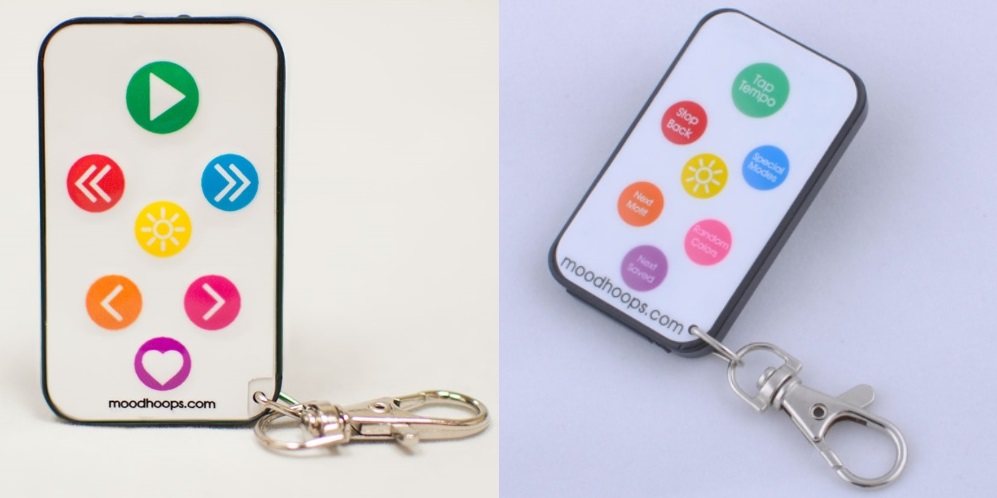 - Both the Designer and the Pro hoop will respond to the green Autoplay/Tap Tempo button at the top of the remote. This allows you to change the timing of the patterns, while still keeping the two hoops’ patterns in sync.