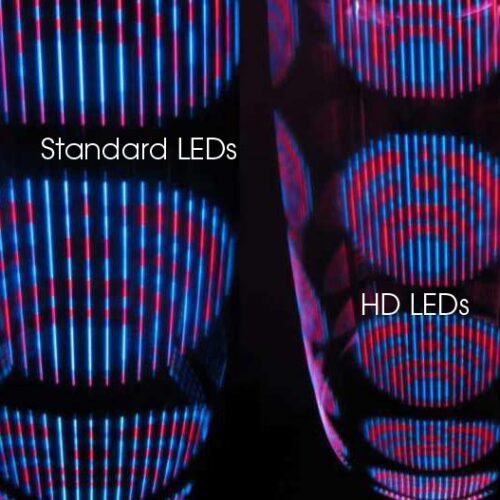 - FutureHoop patterns that use more black space than color are powering fewer LEDs at once, which extends battery run-time. Simple, minimal patterns (like spirals and chasers) can last for many hours on a single charge.