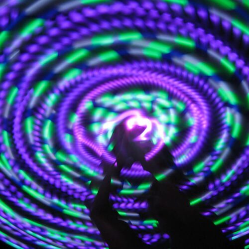 Deep purples and hypnotic greens come together in Luna’s seductive glow. Feel the vibration and magnetic embrace of this beautiful hoop!