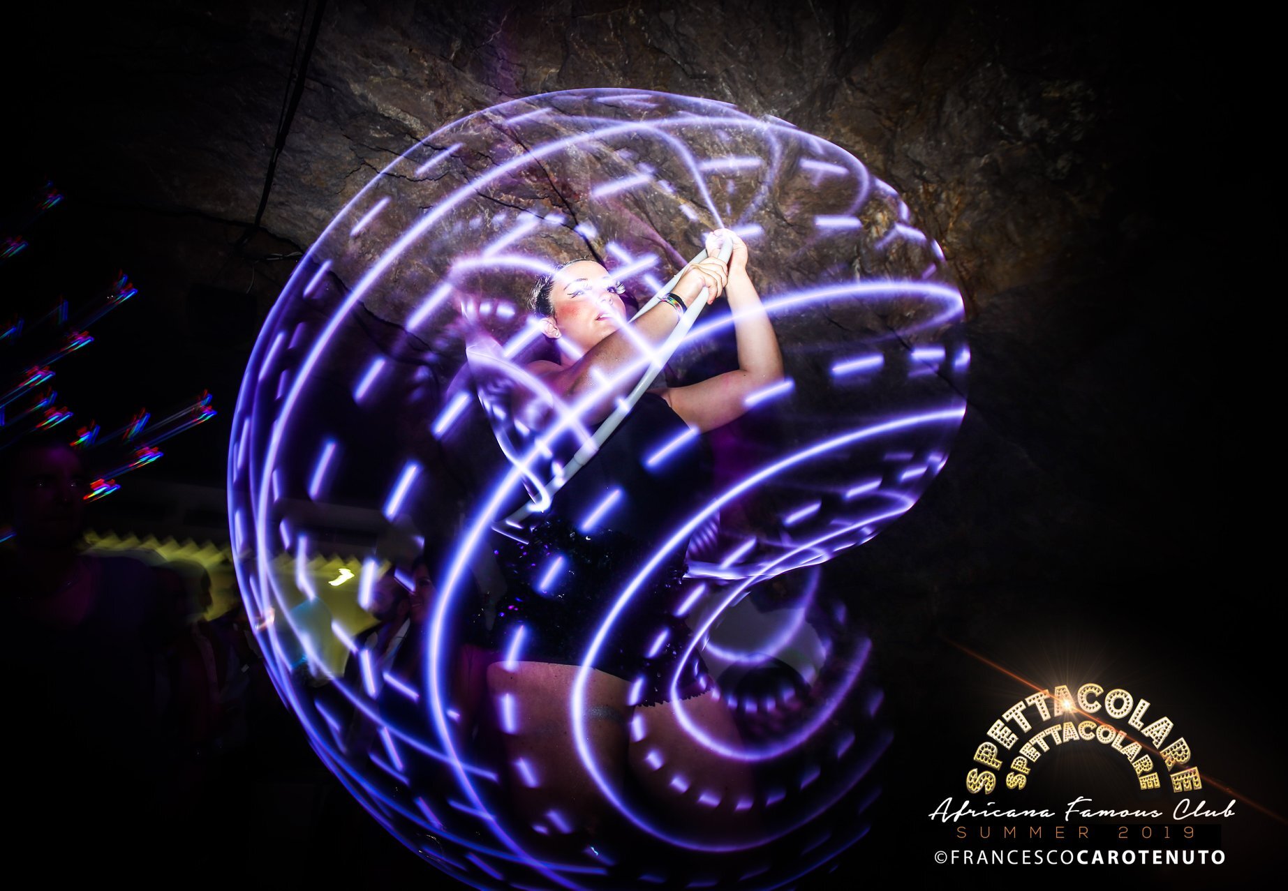 My main specialty will forever be the hoop. Other things I’m passionate about are hat manipulation, juggling in general but also acrobatics and gymnastics. My goal is to also improve with my leviwand, as well as my silk fans.