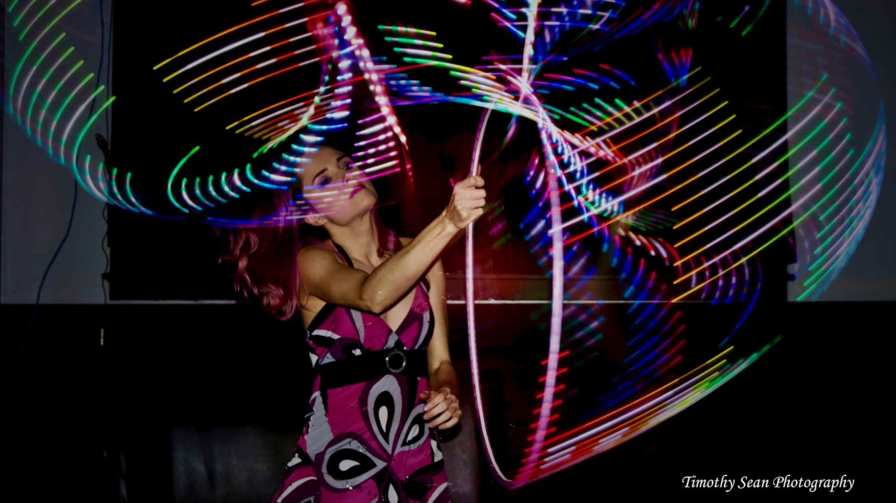 I began hooping in April of 2012 at age 25. I was inspired by a good friend carrying around a kid’s hula hoop and being unsure why. One of her friends was a hoop dancer and she introduced me. I was immediately interested in hula hooping with her, but never knew how to. So after many failed attempts, I googled how to hula hoop and I was presented with a large list of videos showing hooping, tricks, and hoop dancing. It was love at first sight! I decided I was going to do it! The first video of hoop dance I ever saw was Shakti Sunfire’s Boulder Dance Video
