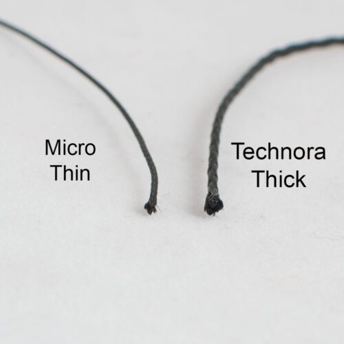 The denser Technora string has a thicker braid and is made of Polytetrafluoroethylene (PTFE) coating. Thick string is generally good for heavier wanding and toss practices, as it’s extra durable. We recommend this string for LED wands due to the medium to heavier weight. Even though this string is thicker it can still appear relatively invisible in certain lighting. Technora string is also safe for use with fire wands, but be sure to inspect your string each time before use.
