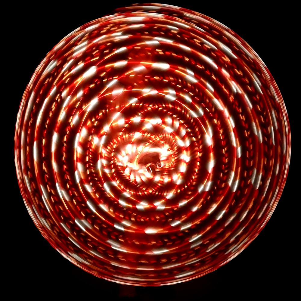 Sparks of red, amber, orange, and white swirl together in the incandescent glow of this fire-inspired hoop.