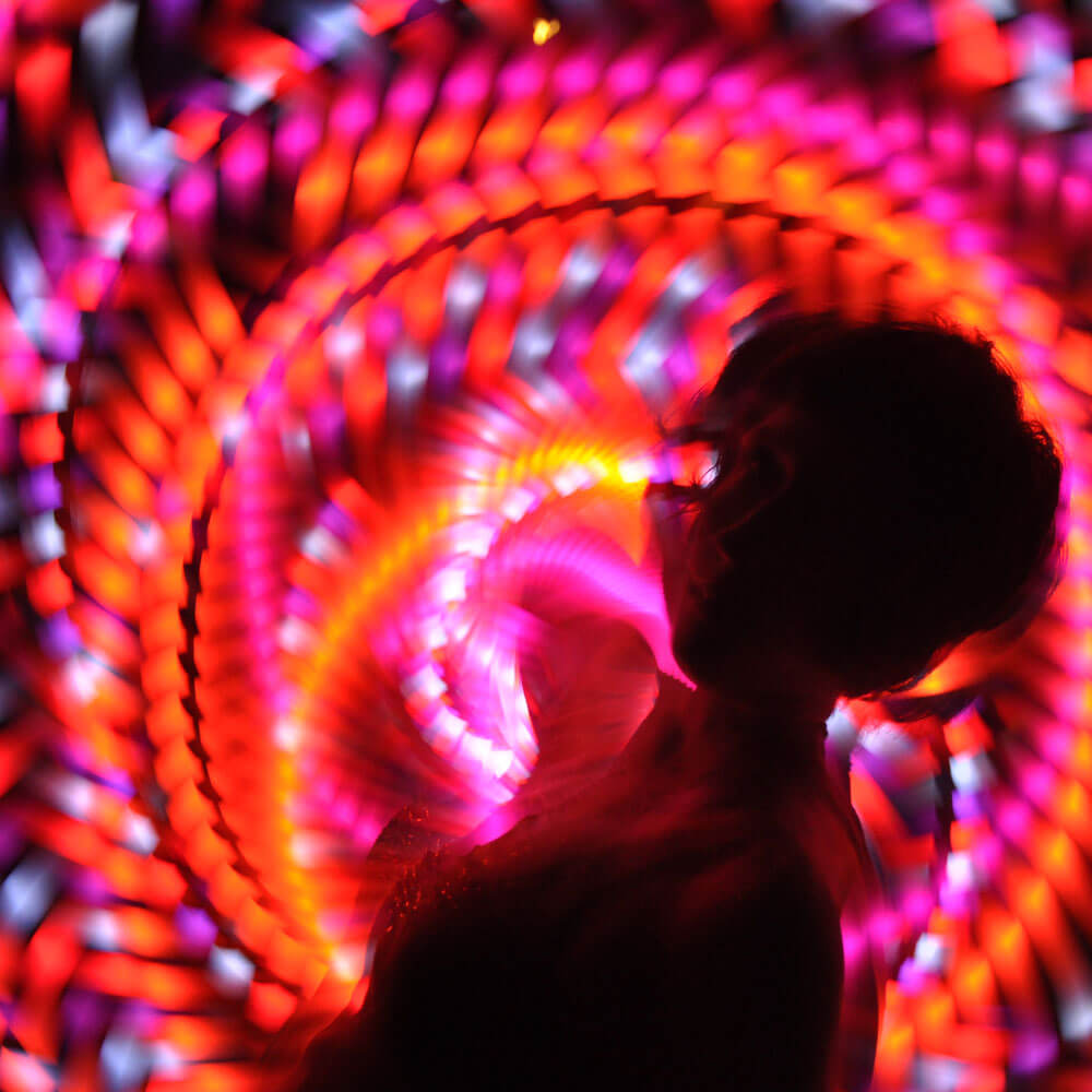 Sweet and spicy, Tigerlily dances through the night with hot pink and orange peppered with red-white-purple dotted strobe LEDs.