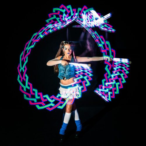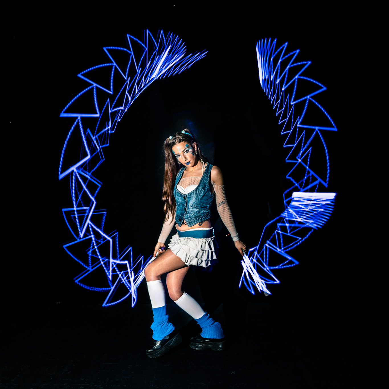 Fun fact: FuturePoi and FutureStaff use identical light elements. You can easily detach FuturePoi’s handles and clip the light elements into the FutureStaff Attachment, and vice versa. The FutureStaff casing is made from durable 1-inch OD polycarbonate tubing with a rigid wood core, reinforced attachment points, and high-visibility center point for balancing your contact moves. The FutureStaff Attachment is compatible with all FuturePoi models. Looking for a Future Staff Attachment piece in a custom size? No problem, just ask.