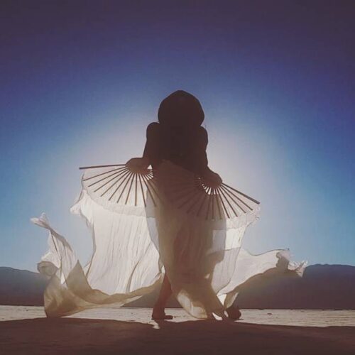 Each silk fan is hand-dyed which may create slight fluctuations or spots in the color that are unique to the individual fan. The wood used for the fan frame may also have slight fluctuations in the color, which is a natural part of the material.